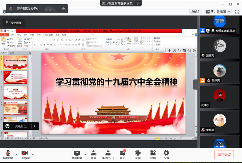 12月16日晚,化工学院在腾讯会议举办学习党的十九届六中全会精神宣讲会,邀请马克思主义学院教师蔡静作宣讲,学院全体学生党员、入党积极分子及已递交入党申请书的团员参会。