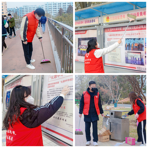 劳动过程中,大家分工协作,走遍校园里的每一条道路、每一处广场,仔细清扫、擦拭天桥上、宣传栏上的尘土,俯身捡起小路边、草丛中的烟头等垃圾。冬日的雁苑寒风阵阵,但丝毫不影响同学们劳动的热情,脸上洋溢着快乐的笑容,额头上沁出了劳动凝结成的汗水。看着辛勤劳动过后干净整洁的校园,同学们纷纷表示很有成就感,将积极参与到文明实践和义务劳动中,为建设美丽雁苑、文明校园贡献力量。
