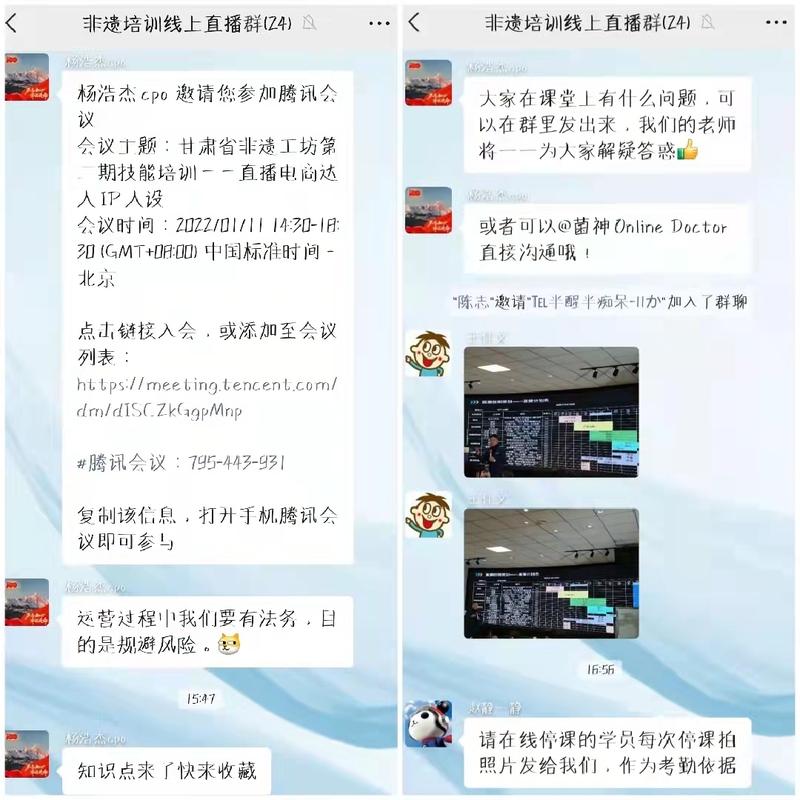 全省三十多个非遗工坊的二十余位学员以及数十位受邀嘉宾在线下会场汇集一堂、同时由于疫情和地震的突发状况无法到场的线上学员也在“腾讯会议”直播间和微信群实时交流自己的看法和提出问题。此次培训通过“双线并行”的传播方式,不仅是对中心工作能力的重要测试,也是对线上线下双线学员学习积极性的一大考验。