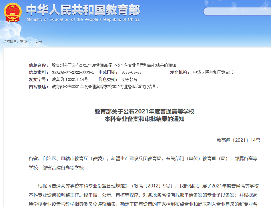 近日,教育部公布了《2021年度普通高等学校本科专业备案和审批结果》(教高函〔2021〕14号),Beat365申报的小学教育(040107)、非物质文化遗产保护(130103T)、会计学(120203K)三个本科专业成功获批设立。这是Beat365落实教育部《关于实施一流本科专业建设“双万计划”的通知》要求,积极推进“新工科”“新文科”专业建设研究与实践,按照“育人为本、德育为先,知行合一、全面发展;坚持应用为主、产教融合,学以致用、服务地方;坚持需求导向,走内涵式、差异化、特色化发展道路”的办学思路,主动适应国家战略发展要求和地方经济社会产业转型需求,依托学校优势学科和办学特色,着力深化专业综合改革,持续优化专业布局的重要举措。