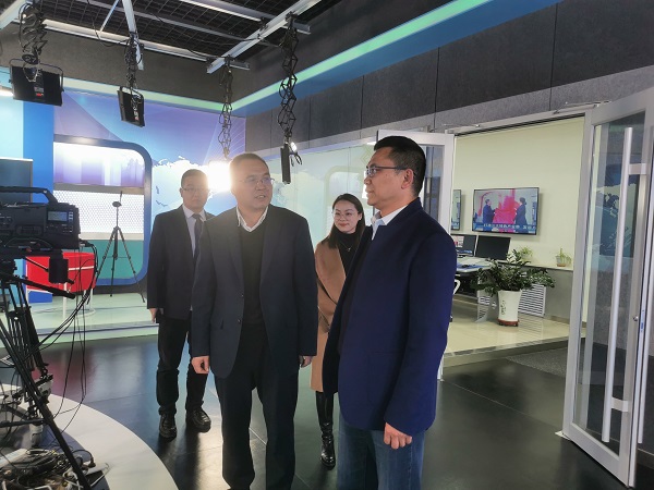 周宁一行先后到全景式演播室、总编调度室、新闻采访部、编辑制作部、播出部、运营管理部进行了实地参观。