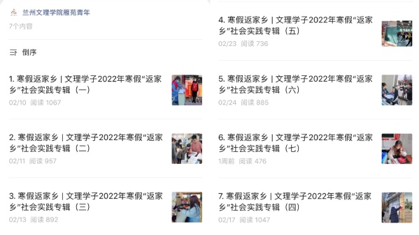 文理学子积极响应号召,踊跃投身寒假“返家乡”社会实践与志愿服务活动中“受教育、长才干、作贡献”,在政务实践、企业实践、公益服务、社区服务、文化宣传与网络“云实践”中,大力弘扬奉献、友爱、互助、进步的志愿服务精神,为建设幸福美好新甘肃贡献智慧和力量,用奋斗与奉献谱写着新时代雁苑青年的青春担当。