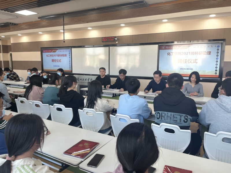 本科教育是高等教育的主体和基础。抓好本科教学是提高整个高等教育质量的重点和关键,教学与科研是高校中有机相联、相互促进的两项工作,科研工作更是体现高校办学水平和竞争力的一个重要指标。近年来,国家对高校科研工作大力支持,学校也投入大量的经费用于科学研究。为了加强科研水平,实现科研反哺教学,进而提升教学质量,学院在2021级本科生中推行学生科研助理工作。经过学生个人申报,指导老师筛选,学院综合考查决定聘用陈远等74位同学为我院首届科研助理。2022年3月10日下午,学院在2-802召开了2021级学生科研助理聘任大会,会议由化工学院副院长师海雄主持,院长张兴辉教授、指导教师及全体科研助理出席了会议。