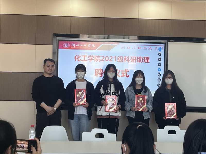 师海雄宣读了聘任学生助理的名单,对顺利选聘的同学表示祝贺,也希望各位同学以勤学求实的精神、各位教师以敬业创新的态度立足岗位,做好本职工作,迎接美好明天。指导教师为每位科研助理颁发了聘书。