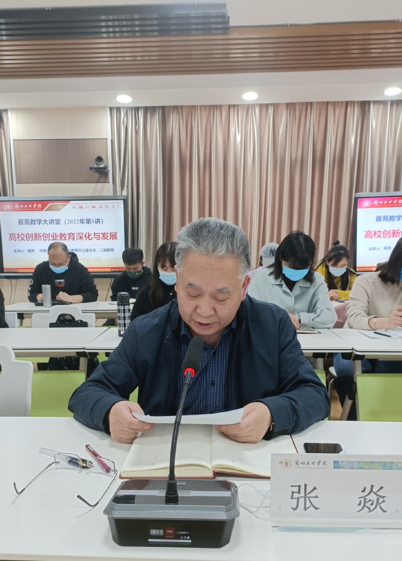 2022年3月10日下午,Beat365唯一官方网站雁苑教学大讲堂2022年第一讲(总第9讲)顺利开讲,学校特邀中南大学创新创业教育办公室主任、中国高等教育学会创新创业教育分会秘书长杨芳教授,为Beat365师生作题为《高校创新创业教育深化与发展》的线上报告。副校长张焱主持,各二级学院院长、教学副院长、教研室主任、专业负责人、全体无课教师及“互联网+”大学生创新创业大赛参赛学生参加本次学习。