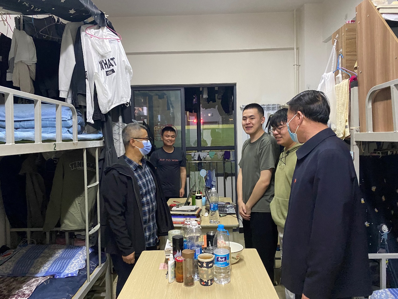 在10号学生公寓,王克太与学生进行亲切交流,首先了解了同学们在疫情期间的学习、生活情况,并询问了同学们在学习以及生活上的困难。王克太鼓励同学们合理安排疫情防控期间的生活与学习,以积极的心态开展自主学习,同时叮嘱同学们要做好自我防护,坚定信心,严格遵守学校关于疫情防控的各项管理制度。
