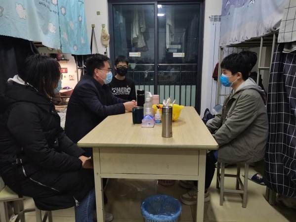 走访过程中,学报党支部书记刘永睿和学生党员们亲切交谈,了解学生党员思想动态,倾听学生心声,掌握学习生活状况。他仔细询问了封闭管理以来同学们的学习生活情况,并勉励同学们要克服疫情期间带来的不便,制定学习计划,合理安排时间,努力学好专业知识,为今后就业打好基础。他强调:“同学们要明确自己的奋斗方向,做自己想做的事情,干自己能力范围内的工作,进而在自己感兴趣的领域中发光发热。”另外,刘书记还根据自己的生活和留学经历为同学们讲述了要提升自身素养、学会感恩父母等方面的问题。