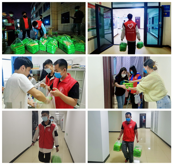 “哪里有需要,我们就在那里!”这是送餐服务队队长彭松同学挂在嘴边的一句话。8号、9号、10号学生公寓楼实行封闭管理期间,校学生会全体成员组建了送餐服务队,每天早、中、晚三次送出6000份左右饭。从南校区到北校区、从北校区到南校区,每天十几趟的奔波,只为了把热乎乎的饭菜及时送到学生公寓楼宇志愿者的手中,再分送到每个同学手中。
