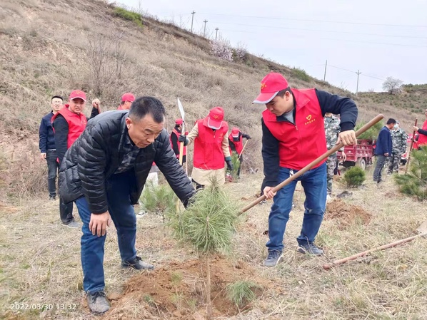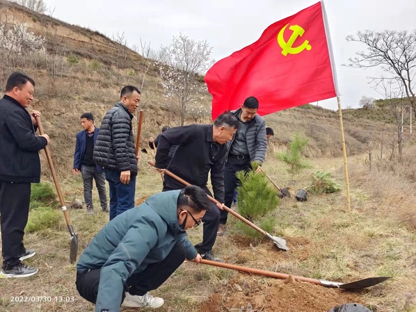 3月30日,学校驻桐川直属党支部践行“绿水青山就是金山银山”的生态理念,开展“为庆城添绿 为党旗增辉”义务植树主题党日活动。