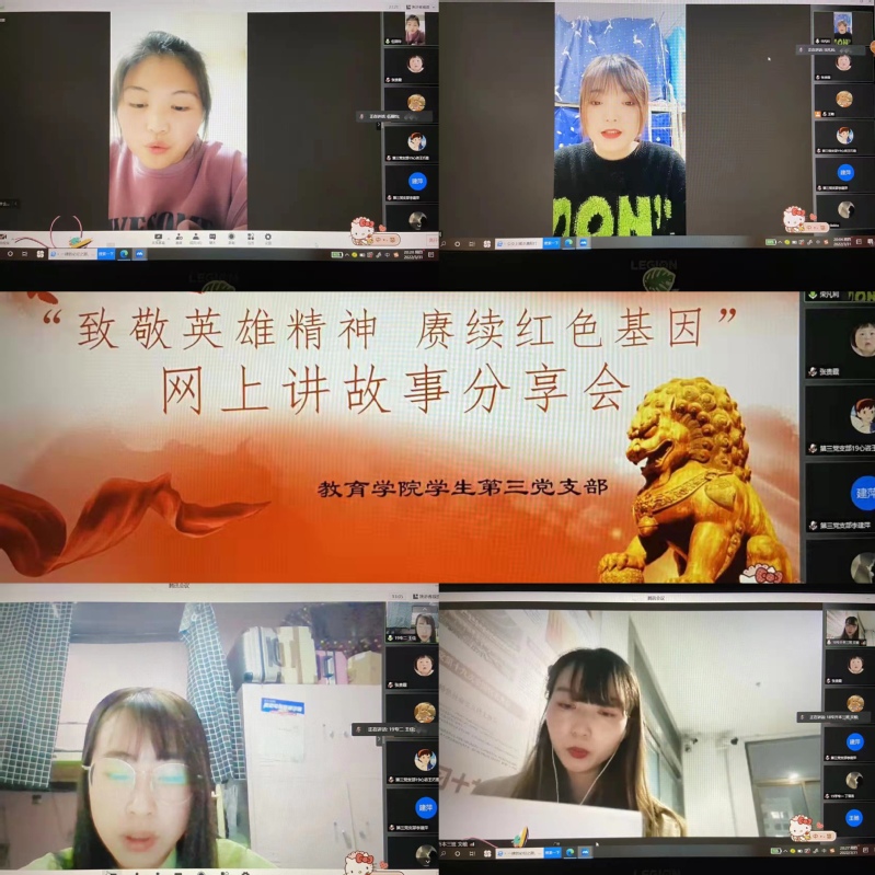 4月1日,教育学院学生第三党支部以清明节为契机,组织开展疫情防控期间党支部特色活动“致敬英雄精神,赓续红色基因”网上讲故事分享会。