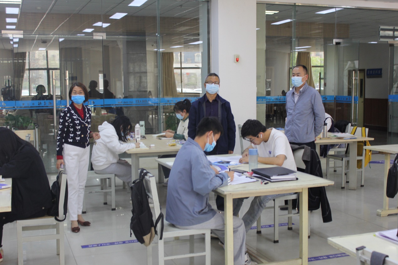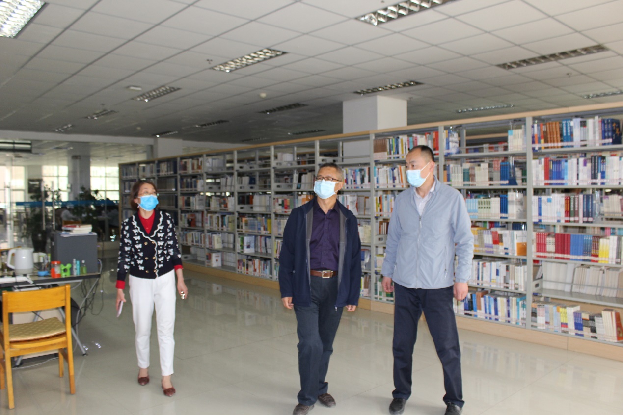 王克太查看了自习室、阅览室、书库等公共服务场所,仔细了解图书馆疫情防控工作具体措施和图书馆疫情防控预案。他强调,疫情防控事关师生健康、事关学校工作大局,图书馆要积极开动脑筋,努力克服困难,要根据学校要求,全力做好疫情防控。同时,要在确保安全的基础上尽可能开放更多阅览空间,积极满足师生读者的需求。