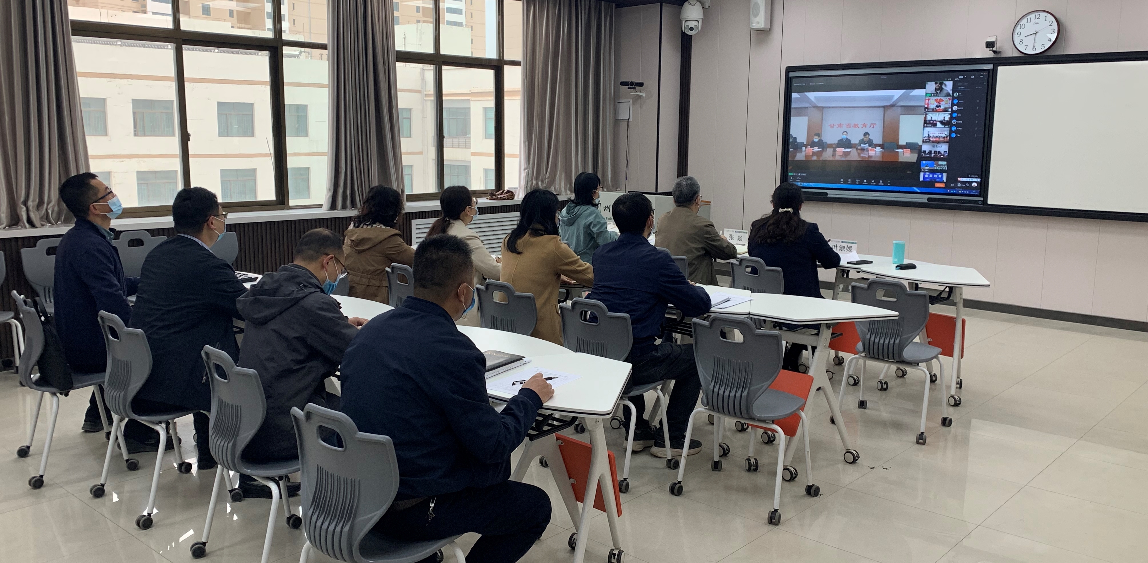 4月14日上午,省教育厅召开2022年全省语言文字工作暨新时代语言文字示范校创建工作推进会,副校长张焱和党委(学校)办公室、党委宣传部、党委教师工作部、党委学生工作部、团委、科技处、文学院、继续教育学院、教务处等部门负责人共同参加分会场会议。