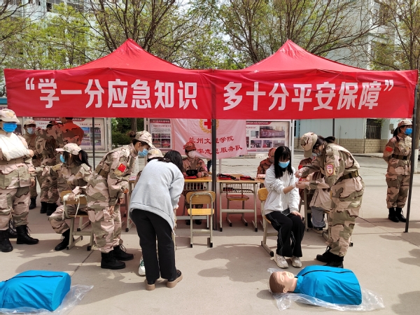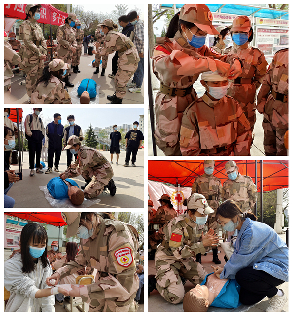 为使同学们掌握简单的医学知识与救护技能,在遇到事故伤害时能够有效进行简单的自救互救,红十字志愿服务队在思源楼广场面向全校同学开展应急救护知识宣传普及活动。队员们现场讲解心肺复苏术的重要性,指出胸外心脏按压和人工呼吸救助过程中需要注意的问题,演示了绷带小包扎、三角巾大包扎、心肺复苏术等急救技能。围观的同学们兴致勃勃,在队员的指导下积极参与模拟实操。大家纷纷表示,希望通过学习熟练掌握,以备在遇到突发疾病等情况时,能为自己或他人赢得黄金救援时间。
