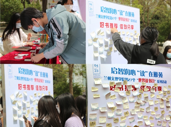 青年学习社宣讲骨干现场推介《习近平与大学朋友们》这本书,领读采访实录第二辑部分篇章,并就读书心得做感言分享。朝夕读书社、马克思主义经典原著读书社社员向同学们推荐自己喜爱的《共产党宣言》等红色经典、《山月记》等文学著作,分享书中的名言佳句,吸引了很多同学驻足倾听。同学们纷纷在便利贴上写下自己读过的经典书籍,写下自己深有感悟的名言佳句,贴在展板上,分享给广大同学。