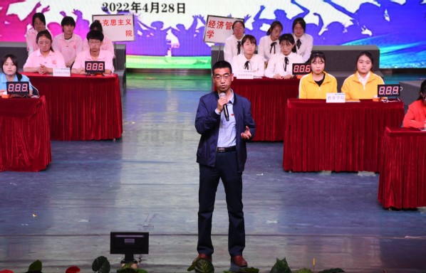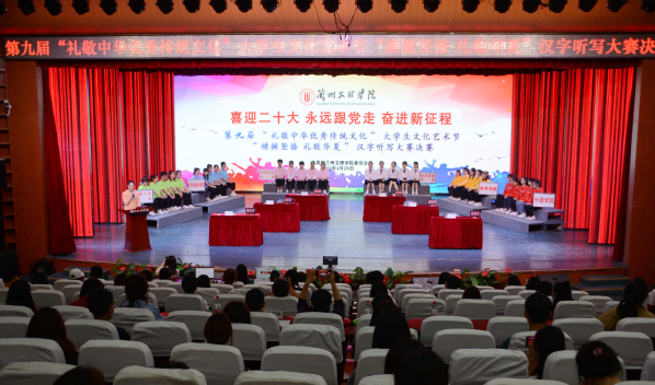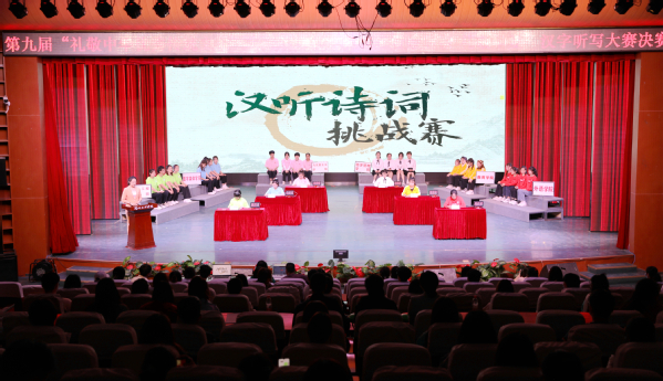 4月29日晚,第九届“礼敬中华优秀传统文化”大学生文化艺术节“横撇竖捺 礼敬华夏”汉字听写大赛决赛在实验剧场举行。文学院马得瑜、于燕、县愔愔三位老师分别担任主考官、主审官,校团委老师与各学院学生代表观看了比赛。