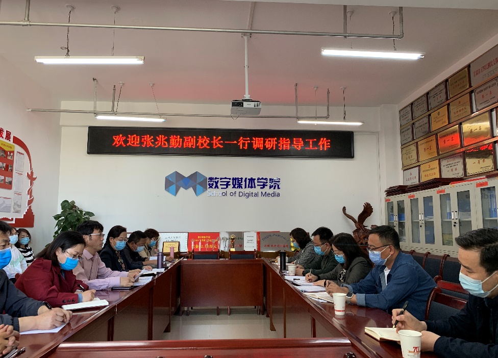 张兆勤认真听取工作汇报后表示,学校领导非常重视数字媒体学院的发展,对于学院提出的问题、意见建议,国资处要全面梳理,逐一研究并认真探索解决措施和对策,同时学院也要加强协同,共同解决问题和落实具体事宜,确保学院按计划完成搬迁工作,为师生打造出更加良好的工作和学习环境。