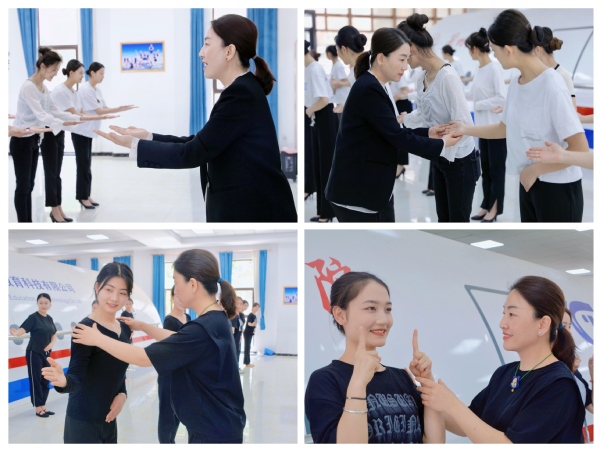 本阶段培训内容包括“基本仪态训练”和“服务工作流程”。礼仪培训指导教师、旅游学院张晓玉副教授通过理论讲解与实操演练相结合的形式,指导志愿者们在会务服务过程中要始终保持甜美的微笑、自信友善的目光,要与嘉宾有眼神交流,迎接嘉宾过程中做到“微笑到、目光到、声音到、手势到、礼节到”。围绕此次党代会志愿服务工作的基本流程,张老师介绍了接待车迎接、接待引导及引领宾客等各项服务内容。培训过程中,志愿者们跟随张老师,对每一个手势、每一个表情都认真细致的练习。