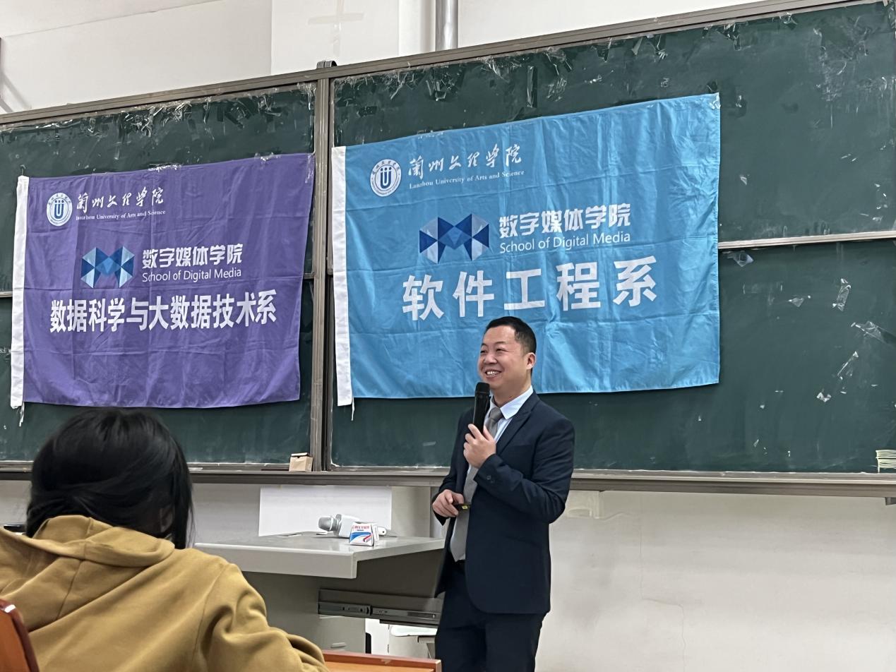 宣讲会上,汪洋结合IT行业近年来发展趋势及自身从业经验,通过分析当前疫情下计算机行业的发展及企业实际招聘要求,、企业对于最新技术方向和技术框架等,与软工大数据专业的学生进行了分析与交流,剖析当今计算机互联网企业薪资标准及福利待遇,让大学生在校期间,能够明确自己未来的就业方向,对专业更深刻,以便能更好的学习专业课。另一方面,让学生更清晰的了解自己的特长,毕业后能够找到适合自己的岗位。