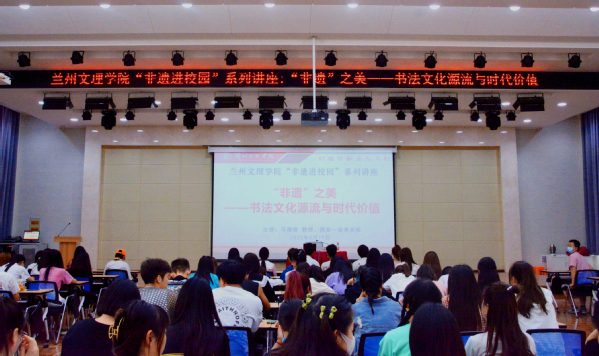 马国俊教授由“非遗”的概念内涵与范畴引入,从“非遗”与传统书法和传统美术、书法文化与书法艺术、书法的过去与现在、书法的时代意义与价值四个方面展开讲解,介绍了书法史的形式与内容、中国书法的历史及取得的成就、美术与绘画的区别,指出了写好字、写好文章的重要性;并结合自己对学习书法的经历感悟,倡导同学们积极学习书法,提高书写能力,从“非遗”角度全面认识书法,弘扬中华优秀传统文化;强调作为中国人,要写好中国字,要将书法作为一种特殊的艺术门类和审美样式,推动“非遗”进校园。