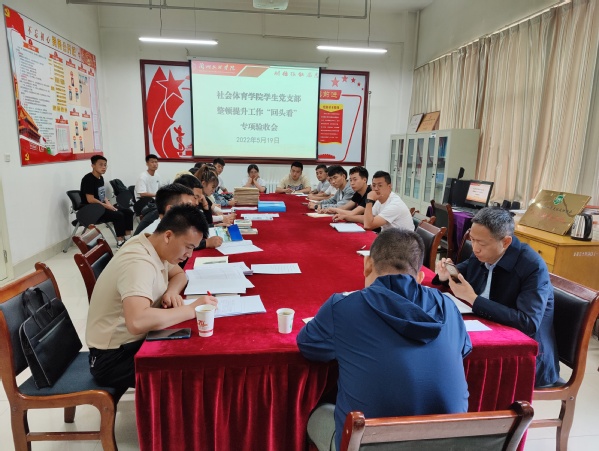 5月19日,党委组织部对社会体育学院学生党支部软弱涣散整顿提升工作“回头看”进行专项验收。党委组织部副部长王金平、组织部干部科科长刘平平、学院党总支书记吴延钟、学生党支部支委及在校学生党员参加了专项验收会。验收会由吴延钟主持。