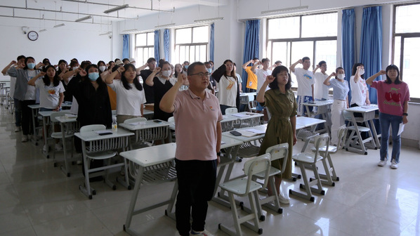 在甘雯老师的带领下,全体党员面向党旗庄严宣誓,在铮铮誓言中重温入党初心,坚定理想信念,牢记职责使命。