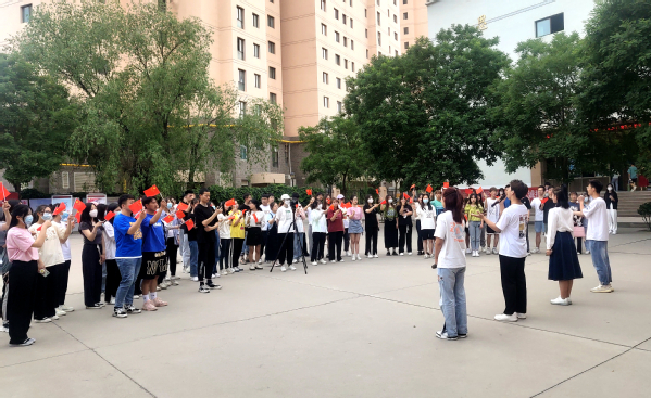 走出宿舍,音乐舞蹈学院杨阳洋等四名同学在思源楼小广场上唱起青春励志歌曲《有我》,这首共青团中央纪念中国共产主义青年团成立100周年的主题曲激荡人心,唱出了新时代雁苑青年矢志追梦、奋斗强国的情感共鸣。音乐舞蹈学院学生党支部的同学们挥舞起手中的国旗,与驻足观看的同学们真情互动,共同录制了雁苑版的《有我》歌曲快闪。