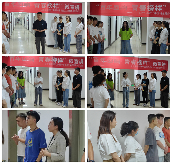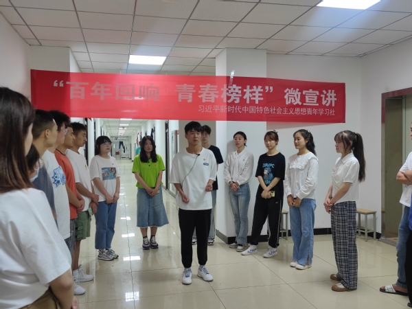 当天中午,青年学习社宣讲骨干走进9号学生公寓楼,走进音乐舞蹈学院同学们中间,以“快闪”的形式展开“百年回响 青春榜样”微宣讲。宣讲队员们以简洁的语言、生动的形式,声情并茂地讲述张太雷、恽代英、邓稼先、雷锋、王伟、张海迪、黄文秀、陈祥榕等青年榜样的感人事迹,这些榜样人物的经典话语频现,让人精神振奋。