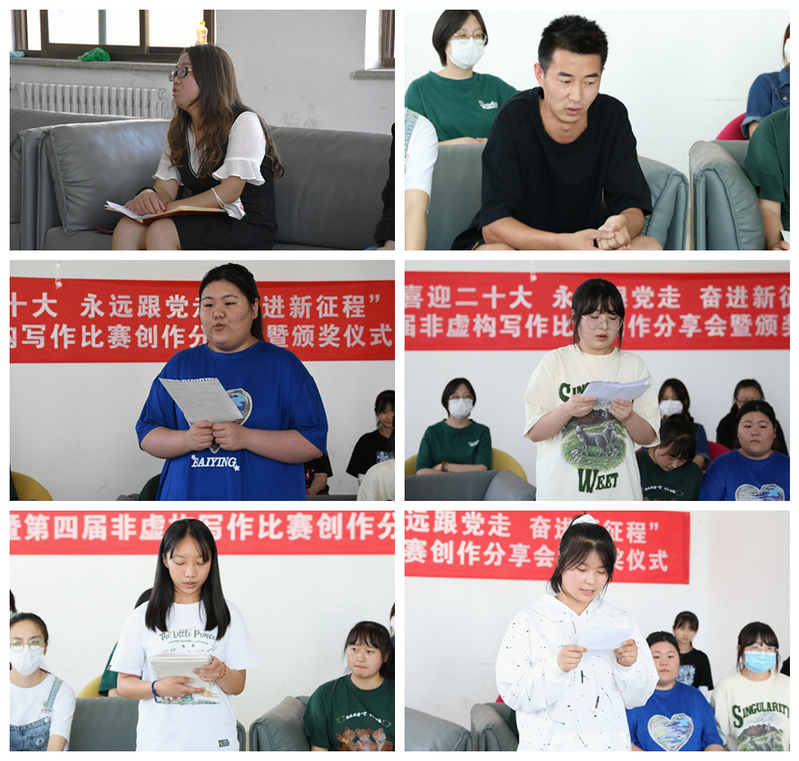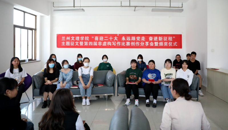 5月31日下午,Beat365唯一官方网站“喜迎二十大 永远跟党走 奋进新征程”主题征文暨第四届非虚构写作比赛创作分享会暨颁奖仪式在三号楼五楼书吧举办。校团委安婧、牛晓春老师,文学院青年教师、河柳文学社指导教师奂菲与本次写作比赛获奖学生代表共同参加活动。文学院分团委贾娜老师主持。