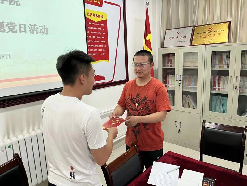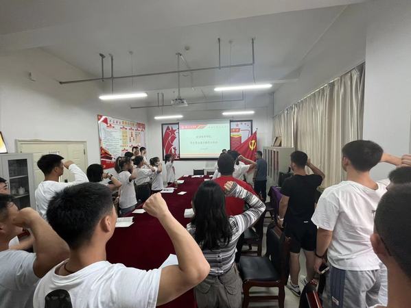6月9日,社会体育学院学生党支部在党员活动室开展“重温入党初心 共过政治生日”主题党日活动,活动由支部书记刘天明主持,支部全体党员、预备党员参加活动。