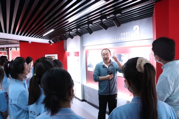 参观学习中,师生们认真聆听着甘肃省团校何复敬老师的生动讲解,在展出的一件件史料文献和实物展品前缓步瞻仰、驻足凝视,追忆在党的领导下,甘肃共青团带领一代代陇原青年坚定信念、紧跟党走,为争取民族独立、人民解放和实现国家富强、人民幸福勇挑重担、勇于斗争,艰苦创业、开拓进取,深切感受到了甘肃青年运动所蕴含的鲜明的政治方向与家国情怀,接受了一次红色教育带来的精神洗礼。