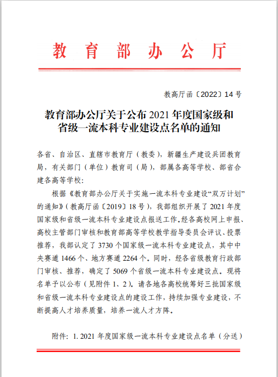 近日,教育部办公厅下发《教育部办公厅关于公布2021年度国家级和省级一流本科专业建设点名单的通知》,公布了2021年度国家级和省级一流本科专业建设点名单,Beat365新闻学、数字媒体技术、旅游管理、视觉传达设计4个专业被认定为国家级一流本科专业建设点。