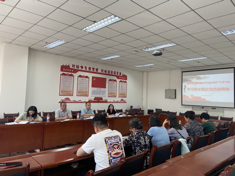 党总支书记赵学森从省第十四次党代会基本情况、十三届省委报告主要精神、十三届省纪委工作报告主要精神3个方面,领学会议精神。图书馆副馆长杨晓雯领学习近平法治思想。
