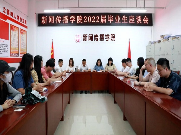 6月15日下午,新闻传播学院2022届毕业生代表座谈会在学院会议室举行,学院党总支书记李军、党总支副书记张春霓、青年教师甘雯、辅导员关思宁和2022届毕业班学生代表参加,会议由甘雯主持。