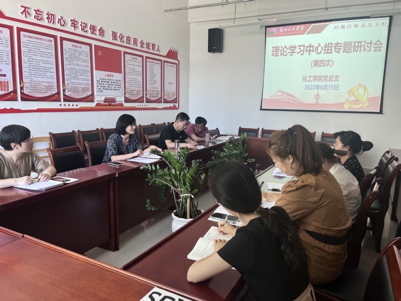 6月15日下午,化工学院党总支理论学习中心组召开第四次学习会,专题学习研讨甘肃省第十四次党代会精神,会议由党总支书记贺志军主持,总支委员、支部书记、组织员参会。