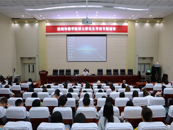 6月16日下午,新闻传播学院在学术报告厅举行硕士研究生考试专题辅导会。校党委委员、副校长、新闻传播学院院长张金尧教授为2019级全体学生做了题为“踏浪而行,拥抱梦想”的考研专题辅导,学院党总支书记李军教授主持会议。