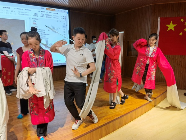 罗登峰主要从戏曲的种类、秦腔和陇剧的渊源、实践体验三部分进行讲述,并将理论与实践相结合,带领学生现场展示戏曲小片段让大家直观的了解戏曲表演的程式性。讲授过程中的互动环节,更是将活动推向了高潮,学员们积极参与其中,实践体会戏曲手绢、水袖、花枪等基础动作,感受到了中华民族传统文化戏曲艺术的无穷魅力,激发其热爱民族文化,热爱祖国的深厚情感,进一步体会到我国戏曲文化的博大精深。