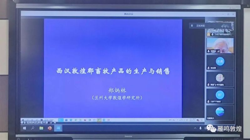 郑炳林教授从西汉敦煌郡的草业生产状况,西汉敦煌郡马、牛、橐驼、驴、羊的养殖与销售等六个方面做了详细讲解。讲座结束后,郑炳林教授和线上线下的老师、同学及学界同仁进行了交流讨论,对与会人员所提的问题进行了耐心细致的解答。