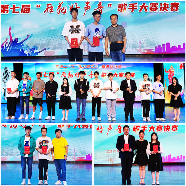 评委老师从演唱水平、歌曲内容、舞台形象等方面进行综合评分。最终,音乐舞蹈学院张旭强、宋鑫、任徐翰分别获得专业组冠、亚、季军,旅游学院邓仲佑、旅游学院刘泽钦、新闻传播学院李娜分别获得非专业组冠、亚、季军;专业组张旭强、宋鑫、任徐翰、张琪玮,非专业组邓仲佑、刘泽钦、李娜、师圣杰、赵彦傑、侯侹羲被评为“雁苑好声音——十佳歌手”。新闻传播学院高振毅在网络投票中获得最高人气奖。