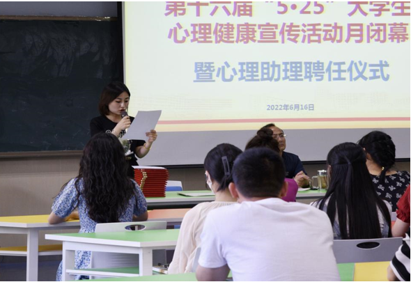 6月16日下午,心理健康服务中心举办“第十六届5·25大学生心理健康宣传活动月闭幕暨心理助理聘任仪式”。