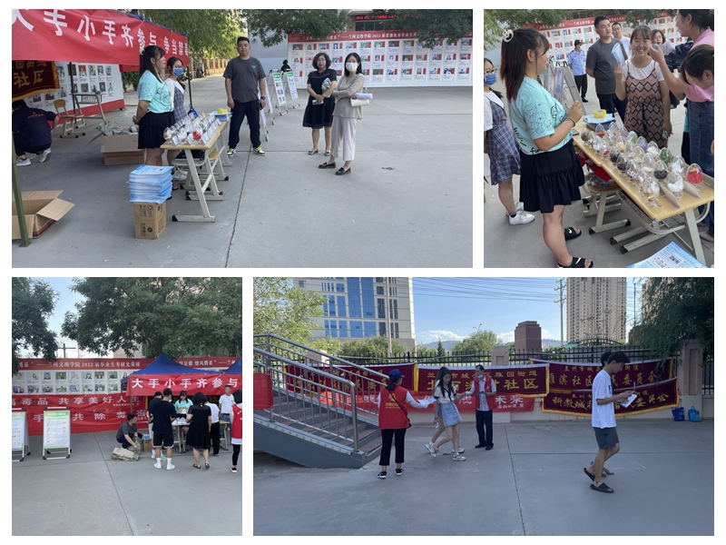 线下互动,普及禁毒知识。邀请城关区禁毒办民警在安亭广场以展板宣讲的形式向师生宣传相关法律法规,普及如何识别制毒、运毒、识毒的相关知识,使广大师生认清毒品对个人、家庭、社会的危害。同时,邀请北面滩社区、雁滨社区、科教城社区等禁毒工作人员进校园,通过发放宣传彩页,展示毒品实物样品,让师生增强了认识毒品、防范毒品、拒绝毒品的意识。
