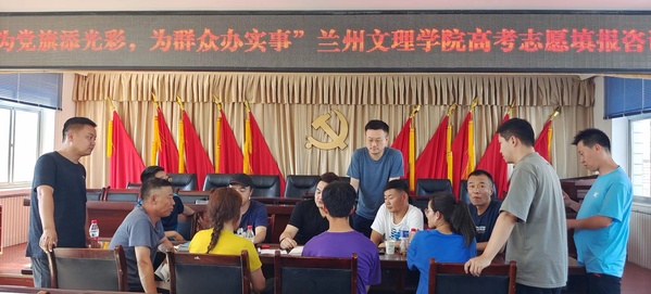指导志愿填报现场,招生就业处党支部老师在全体驻村工作干部配合下,就2022年甘肃省高考填报政策、填报方式、填报渠道、填报要求和注意事项等为群众解疑释惑,针对2022年甘肃省录取批次变化、投档模式、位次排列的原则、志愿填报技巧、院校专业录取原则、平行志愿原则、专业填报注意事项、如何判断高校实力、如何了解专业冷热、录取过程等情况进行了解读分析,对考生志愿填报给予一对一辅导。
