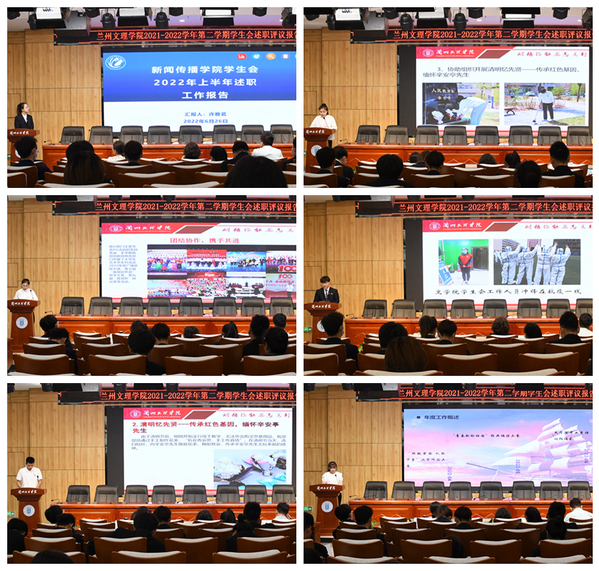 随后,校学生会主席团成员和各部门负责人进行了本学期工作的述职报告。大家总结成绩、分析不足,并提出了目标明确、切实可行的工作计划。述职评议结果将作为学生会工作人员评优选先的依据。