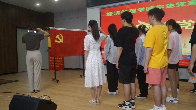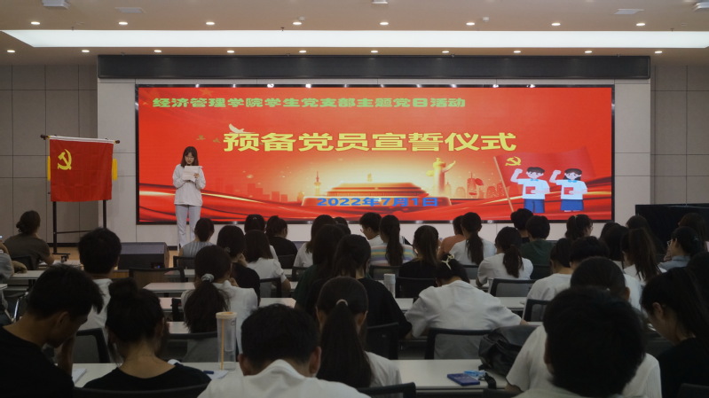 石晶主持了2022年春季接收预备党员的入党宣誓仪式,宣读了校党委关于批准接收孙丹等36名同志为预备党员的决定。庄严的《国际歌》之后,在工管系学生党支部书记马然的领誓下,36名新接收预备党员面向党旗庄严宣誓,各支部书记为参加宣誓的新党员配戴了党徽。学生党员代表分别发言。