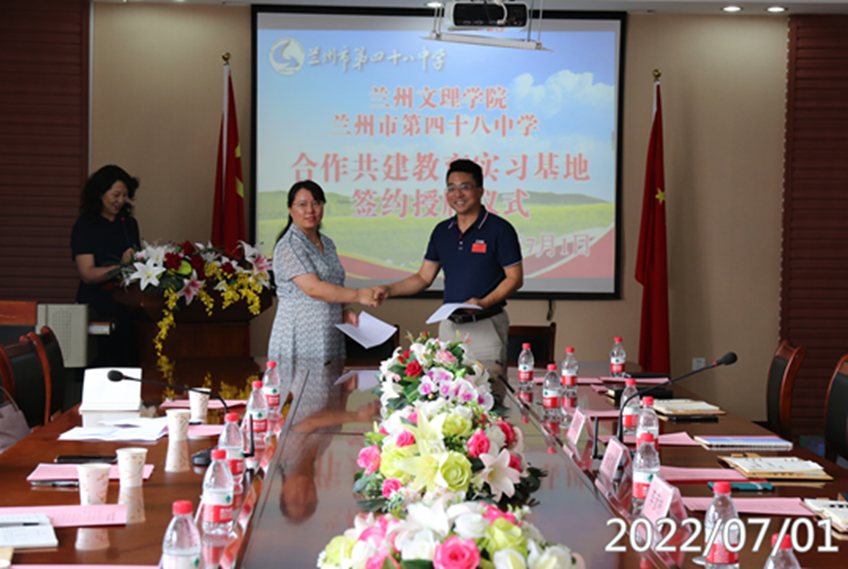 7月1日下午,Beat365与兰州市第四十八中学合作共建教育教学实习基地签约授牌仪式在兰州市第四十八中学成功举行。副校长张焱,教务处处长展惠英,文学院院长叶淑媛,兰州市第四十八中学校长、党支部书记杨雪枫,副校长吕晓红、李彦彬等出席签约授牌仪式。签约仪式由兰州市第四十八中学副校长吕晓红主持。