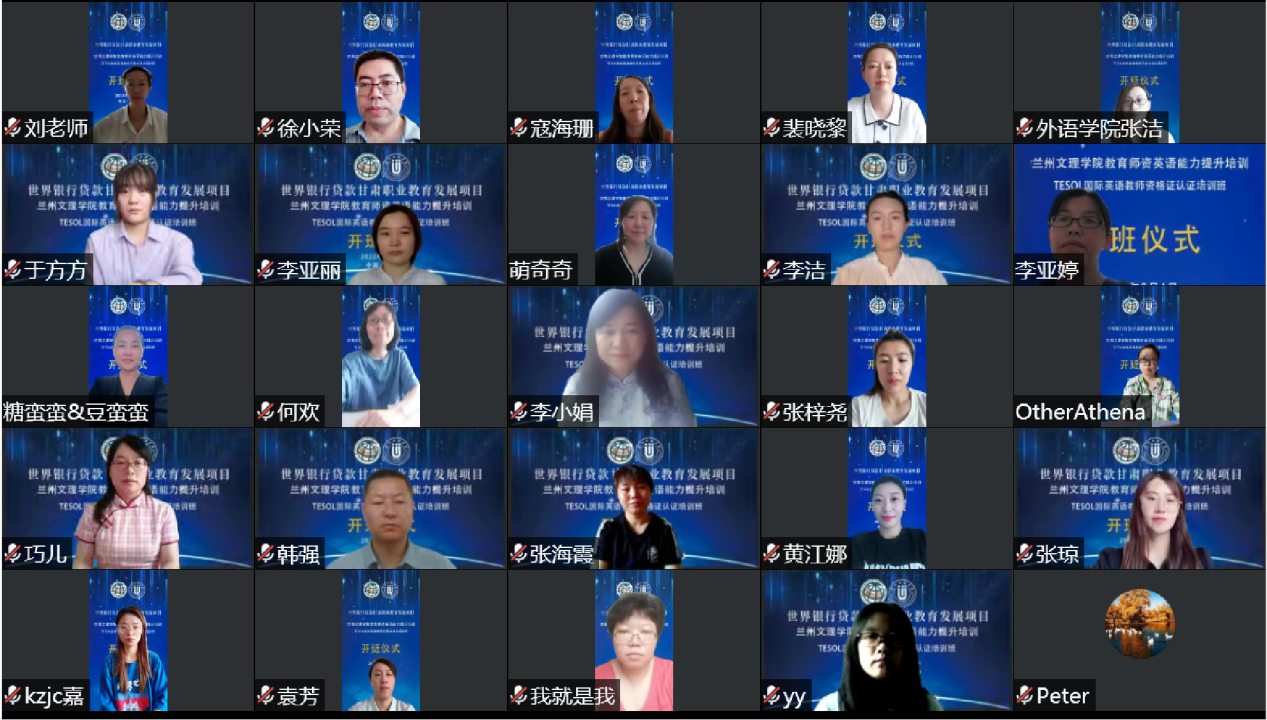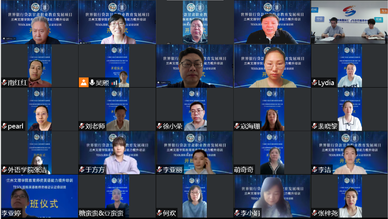 8月4日上午,Beat365“世行贷款甘肃职教项目—教育师资英语能力提升培训项目”——TESOL国际英语教师资格培训举行线上开班仪式。副校长张焱出席会议,甘肃省教育国际交流与合作服务中心主任梁翔,国资处处长、世行项目办主任张峻瑜,外语学院院长张同俊,教务处副处长苑毅,外语学院副院长吴熙以及教务处工作人员,参训教师,甘肃省教育国际交流与合作服务中心工作人员线上参加,教务处处长展惠英主持会议。