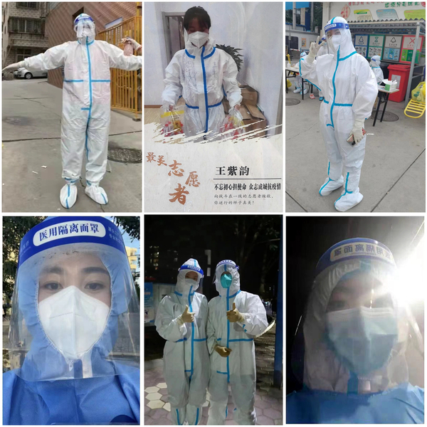 兰州疫情爆发后,家住兰州市安宁区银滩路社区的2020级绘画班学生王紫韵第一时间到社区报到,成为了一名疫情防控志愿者。早上帮助社区贴试管码,下午给每个社区分发试管,晚上还要到核酸检测现场维持秩序。外出期间需要穿着密不透风的防护服,不能喝水,不能吃东西,不能上洗手间,即使再口渴,衣服被汗水浸湿就没干过,也得忍到脱下防护服的那一刻。从7月10号一直持续到8月1号,每天工作10小时,这已经成了王紫韵的假期日常。“这个假期,我有机会体验到了医护人员抗疫过程中的艰辛,当然我还远没有他们辛苦。作为一名土生土长的兰州青年,守护家园,我们责无旁贷!”王紫韵说。
