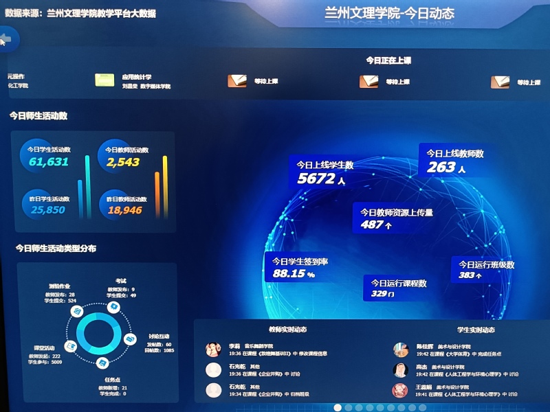 8月22日下午,校长郑伟强检查了学校线上教学开展工作,现场查看了教学管理大数据分析平台运行情况和相关教学统计数据、线上教学的授课情况及保障措施等情况。