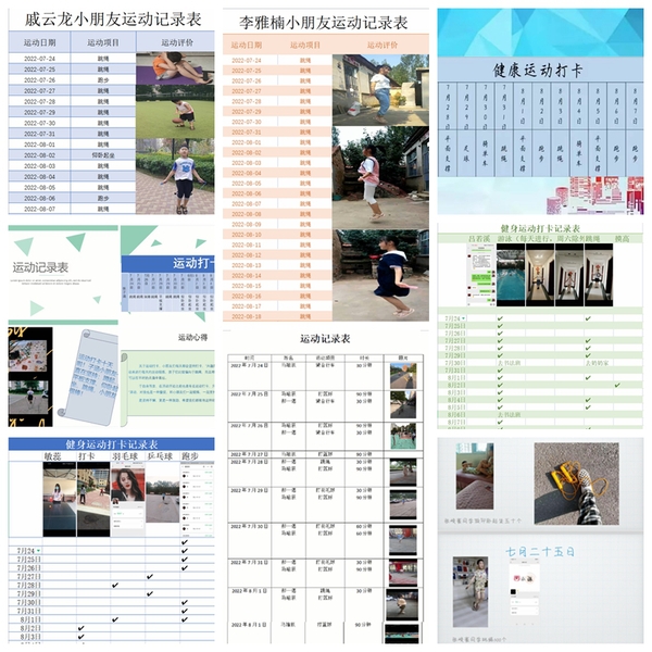 体育运动是青少年健康成长的必修课,也是假期支教的重要内容。志愿者根据结对小朋友的体质状况、兴趣爱好与实际条件,推荐适合的运动项目,帮助他们制定运动计划,设计制作图文并茂的个人运动打卡记录表。跑步、跳绳、仰卧起坐、羽毛球、乒乓球、篮球、健身操、太极拳、单车骑行……,孩子们热情高涨,坚持每天运动打卡。运动结束后,志愿者与小学生线上分享彼此的运动成果和感受,引导孩子们享受运动的快乐,培养坚持不懈的运动习惯和阳光自信的心态。