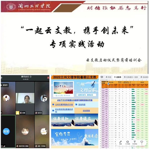 活动前期,校青年志愿者协会完成了活动策划、志愿者招募、志愿者审核等各项准备工作,并先后召开三次志愿者线上培训会和执行团队会议,对实践活动内容、形式及工作要求作了详细解读,为志愿者们答疑解惑。执行团队搭建了功能齐全、检索方便的腾讯文档协作展示页面和查询表,方便志愿者们进行任务通知与提交、进度记录与查询、活动答疑与数据统计,为“云支教”工作奠定良好的基础。