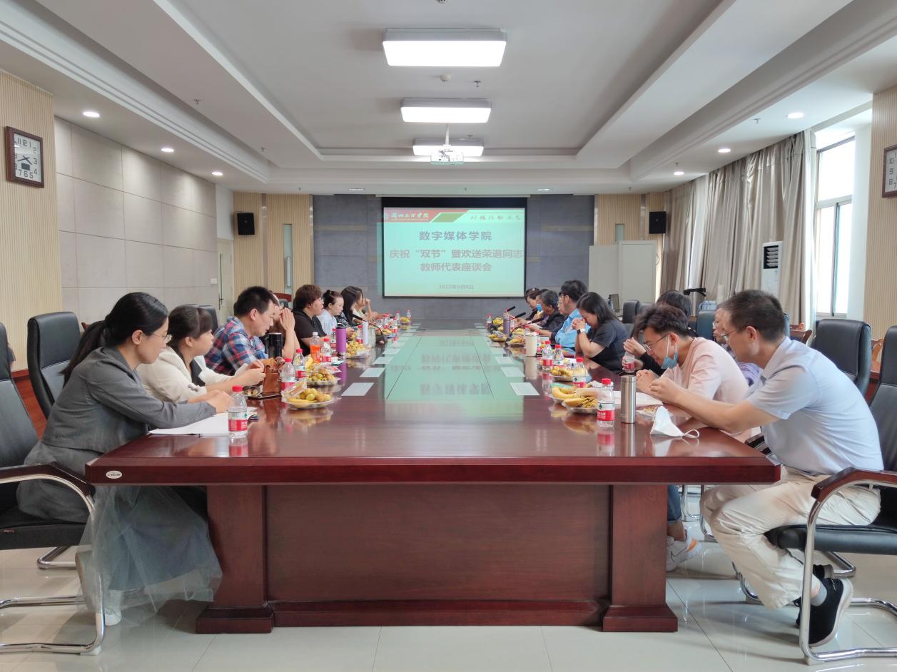在中秋节、第38个教师节即将来临之际,9月8日下午,在数字媒体学院党总支的领导下分工会召开“庆祝双节暨欢送荣退同志教师代表”座谈会,学院党总支书记陈小琴、院长李恒杰、副院长黄珍、荣退老师高毅,以及教师代表参加座谈会,座谈会由分工会主席、副院长张毅主持。